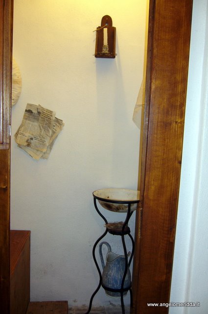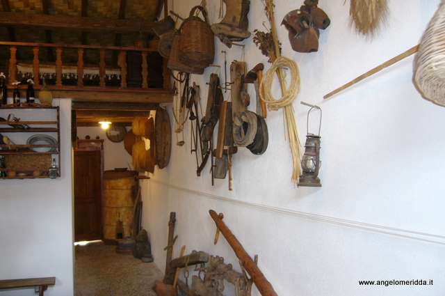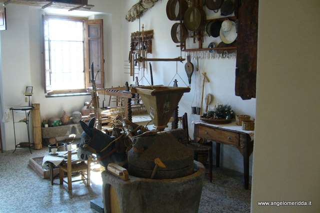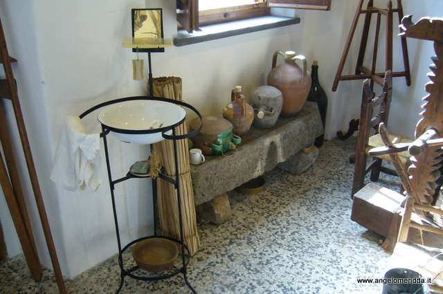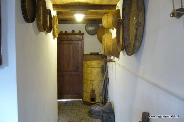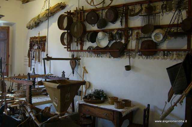 La Casa Antica Milese (casa museo) L'idea di realizzare una casa museo nasce dalla raccolta, negli anni, di numerosi utensili ed oggetti di uso comune di cui il passare del tempo ha fatto perdere l'uso e la memoria. Il museo nasce nei locali ristrutturati della vecchia "bottega di zia Picchicca" (Francesca Manunta), a Milis (OR). Nel realizzarlo non si è voluto far mostra di una "collezione di oggetti antichi" ma si è cercato di riprodurre una casa "così com'erano anticamente le case", arredando ed attrezzando la casa con gli oggetti quotidiani che le famiglie avevano a disposizione. ------------ CHI VERRA' A VISITARE "LA CASA" POTRA'  ASSISTERE "ALL'ACCENSIONE DEL FUOCO" CON LA PIETRA FOCAIA ------------ LA  CASA E' ACCESSIBILE A TUTTI "I DISABILI" ------------- "I NON VEDENTI"  SARANNO AIUTATI A TOCCARE, A RICONOSCERE GLI OGGETTI E A CAPIRNE L'USO --------------- I PICCOLI VISITATORI POTRANNO GIOCARE CON GLI "ANTICHI GIOCATTOLI" DEI BAMBINI DELLA CASA --------------- I Visitatori saranno accompagnati da Guide che parlano :  Sardo/Milese, Sardo/Logudorese, Italiano, Spagnolo, Inglese  e  Francese --------------- - Per i visitatori sono anche disponibili i servizi igienici - --------------- [ l'ingresso è a  offerta - non obbligatoria - ] Contatti : (telefoni - 0783-51256 - 3400933639 - Angelo, Maria e Pier Gavino) ------------------------------ VISITA  VIRTUALE della "Casa Museo"La facciata La facciata della casa presenta degli elementi tipici delle antiche case milesi tra i quali il numero civico, il battente ( in questo caso a forma di manina), l'anello per legare l'asino e "Sa Stradedda" (il sedile). (Clicca qui per andare alla descrizione) L'interno Lato Est Nella parete rivolta ad EST sono presenti oggetti di uso comune, di varie tipologie. Nel fondo possiamo intravedere il piccolo corridoio che porta alla stanzetta da letto ed al cortile. Sulla sinistra, in alto, il ballatoio del soppalco ( su zostru ). (Clicca qui per andare alla descrizione)     Lato Ovest Si possono vedere il telaio, l'asino che gira la macina per macinare il grano,numerosi utensili appesi al muro e la scala per salire in soffitta (Clicca qui per andare alla descrizione) Lato Sud (ingresso) A sinistra dell'ingresso c'è "Sa Stradedda de is Broccas"; una larga pietra rialzata  sul terreno dove venivano poggiate le brocche e gli altri recipienti per la riserva d'acqua potabile. In primo piano un portalavamano con specchio, sapone e secchio per l'acqua sporca. (Clicca qui per andare alla descrizione)  All'interno del lavamano è stato messo quest' avviso col quale si specifica che questo museo può essere "Visto" anche dai non vedenti.  Nel centro della sala troviamo diversi oggetti di uso quotidiano come Il telaio, sedie, il focolare e la macina       (Clicca qui per andare alla descrizione) Su Cuaddu de is Fususu"     Rastrelliera per appendere gli arnesi necessari per tessere. La parete di fondo e la scala per salire a "Su Zostru"  Appese al muro si vedono due piattaie dove venivano sistemati, oltre ai piatti, numerosi macinini, bottiglie, bicchieri, caffè, liquori, ecc. (Clicca qui per andare alla descrizione) "La Porta D'Ingresso"          e la finestra della facciata visti dall'interno   La sala dell'ingresso vista dall'interno        Particolare della soffitta: su Zostru       Qui  dormivano i bambini più grandicelli; i maschi           sul tavolato  sopra le stuoie e le femmine nel       letto (su canapé).      (Clicca qui per andare alla descrizione)                                                                                                                                    Particolare de "Su Zostru" Il mobile con reticella alle pareti sospeso alla trave è "Sa Muscatiera" dove venivano conservati i cibi deperibili al riparo dalle mosche e da altri insetti.                                                              (Clicca qui per andare alla descrizione)                                                                La sala vista da su zostru  Lato ovest La sala vista da su zostru  Lato est        La sala vista da su zostru             Centro della sala                                        Di notte attorno al focolare si stendevano le                                        stuoie dove dormivano gli adulti di casa.                                        Infatti anticamente solo le persone sposate                                        dormivano nel letto.                                       ( clicca qui per andare alla descrizione ) Lato Ovest tavolo e rastrelliera          ( clicca qui per andare alla descrizione ) Lato Est attrezzi agricoli per lavorare la terra "Sa Mesa Manna" (il tavolo grande) e l'angolo dei          loro personale ripostiglio (in questo caso un cestino) "giochi dei bambini" che avevano un           dove tenevano tutti i loro giocattoli. Nel sottoscala si tiene il maiale                                        era scelto a bella posta perché per l'ingrasso. Lo spazio ristretto                                        il